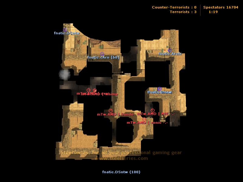 Об игре: Никакого чата, ни секунды отвлечения, предельная сосредоточенность, великолепный aim, строго отработанная тактика и блестящий team play. А что вы хотели? Это финал ESWC Masters 2008. Нас ожидают быстрые красивые, тактически отработанные раунды в исполнении двух, наверное, самых стабильных команд Европы – Fnatic и Mtw.